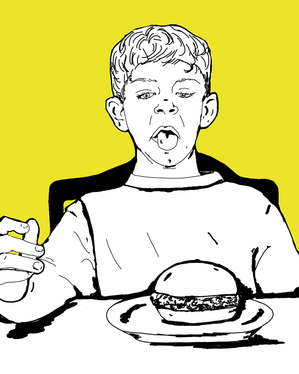 "My Mom and Dad made burgers on the grill. They were spicy and hard. I did not like it! I wanted to throw up. Then I went in my room and cried."