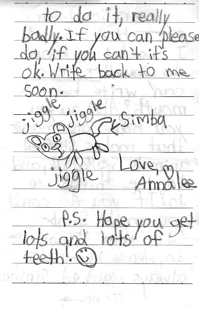 I should have expected that one magical letter per month from the Tooth Fairy would not suffice. Again, I am glad that she gave me warning when she whispered in my ear upon settling in after school yesterday that she left another note in her Tooth Fairy box. I don't expect that this will end any time soon. If she is anything like my sister, she will be 11 years old when the rug is ripped from beneath her at a family dinner and her whole world will crumble. Until then...