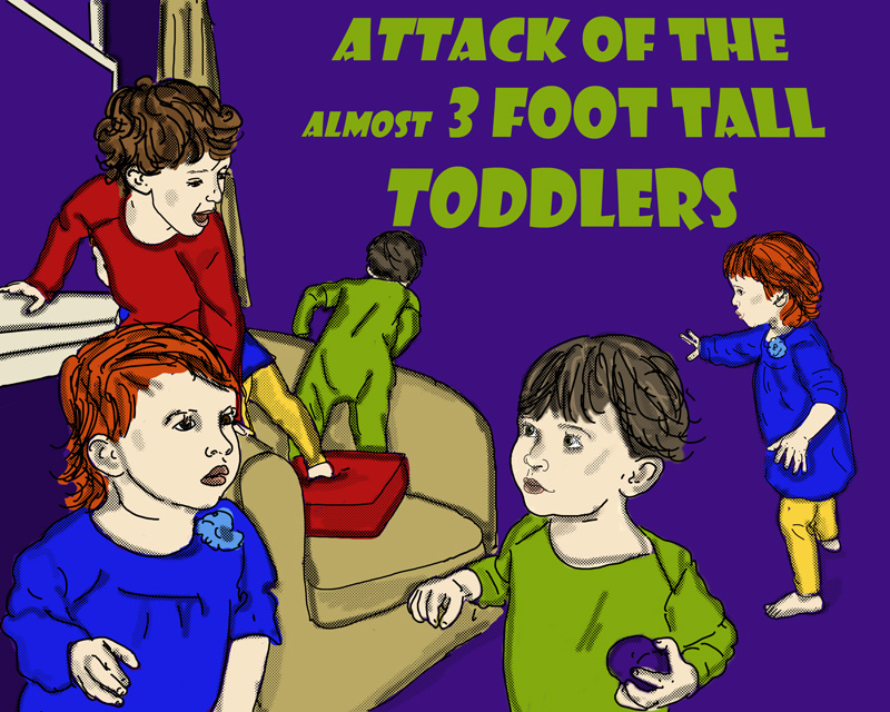 When toddlers congregate, they seem to multiply, quite rapidly. They are omnipresent. They grow 8 tentacles- and stretch said appendages to reach all four corners of a room. At one point- all three kids broke out into a hybrid tribal/ zombie dance- to music only the three of them could hear. Visiting toddlers are the best child safety experts- they are quick to point out the little spots in your home which leave a toddler vulnerable to danger and leave your home exposed to a toddler attack. They ask for things you have no possible way of producing for them- like 'teeny tiny little giraffes and hippos'- which I later found out might have meant 'crickets and grasshoppers' in Princess Commando's terrarium. Toddlers, also, give your IKEA Tullsta armchair the most action it has ever seen in its 8 years of existence.